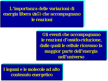Le cellule catturano quindi l'energia dall'ambiente attraverso processi esoergonici (DeltaG < 0); la convertono in ATP e NADH e la utilizzano per sostenere i processi endoergonici (DeltaG > 0) e per tutte le altre loro necessità.