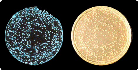 riportata la stessa piastra, contenente colonie di un batterio