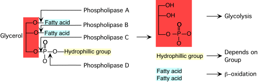 Le figure successive ricordano le azioni delle Fosfolipasi e il processo di beta - ossidazione ciclica degli acidi grassi.