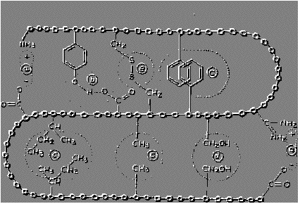 La figura successiva ricorda i vari tipi di interazioni cui possono dar luogo i raggruppamenti atomici delle molecole amminoacidiche nelle strutture proteiche.