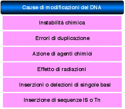 Le figure successive ricordano le cause delle modificazioni del DNA e le basi molecolari delle mutazioni.
